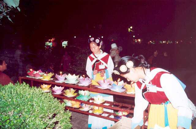 Lijiang - každý zamilovaný si zakoupí svíčku v lotosovém květu....